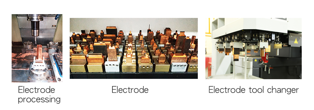 Electrode tool changer continues processing for 24 hours short the working time.